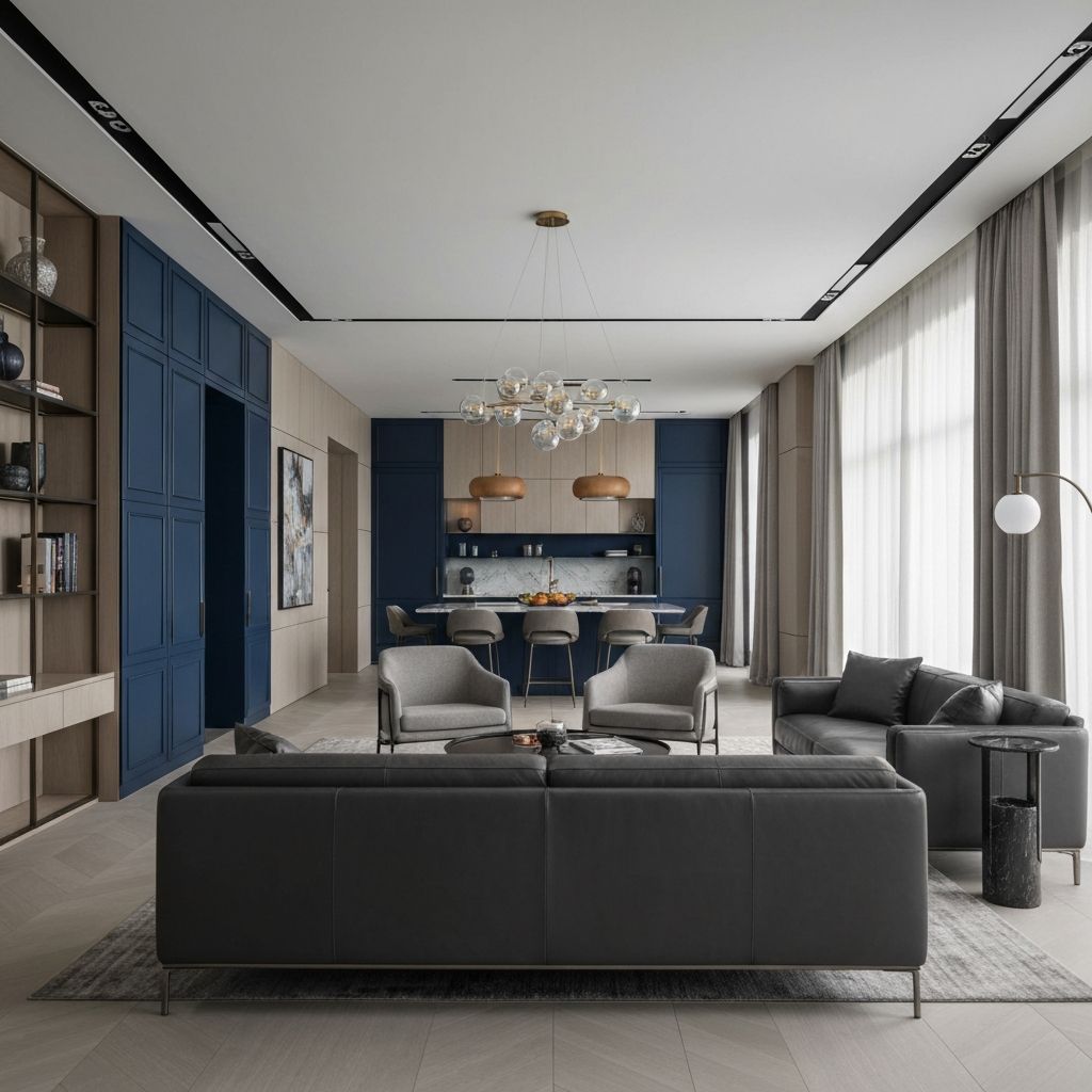 Form follows function with emphasis on simplicity and industrial materials. Clean geometric forms and neutral colors.