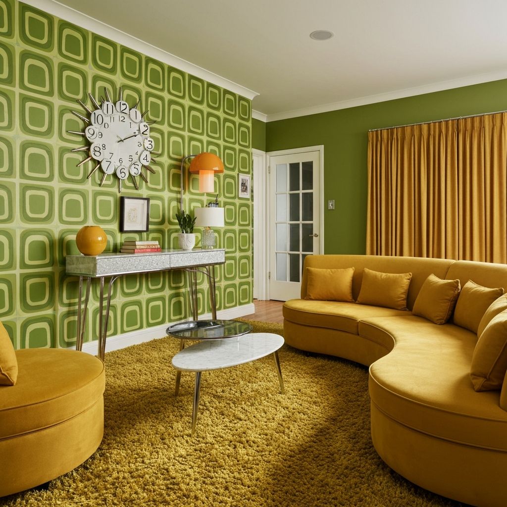 Nostalgic celebration of past decades. Bold colors, funky patterns, and iconic furniture from the mid-20th century.