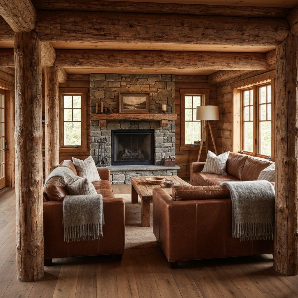 Celebrates natural beauty and aged patina. Features rough-hewn wood, stone, and handcrafted elements that connect to nature.